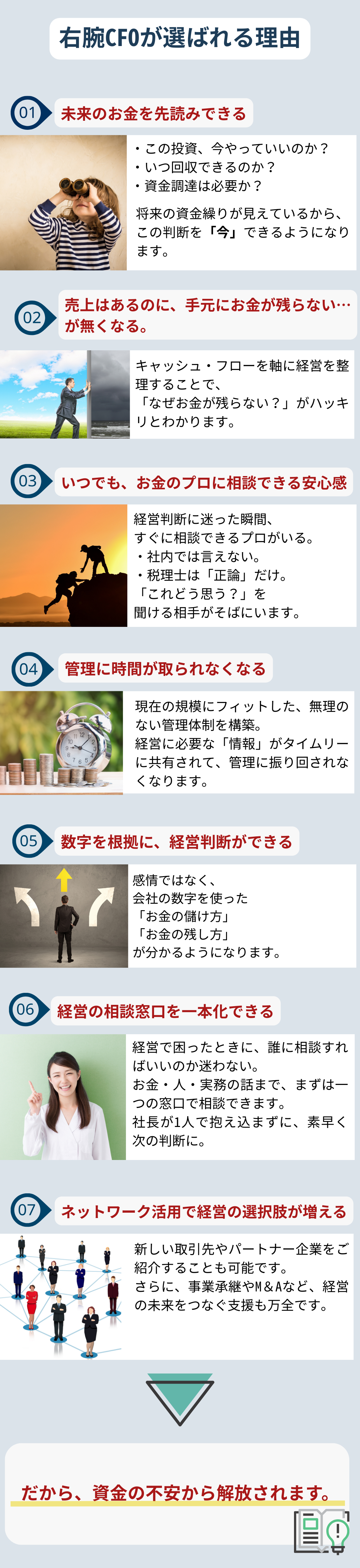 投資判断や資金調達を中心に社長の意思決定を支えます。